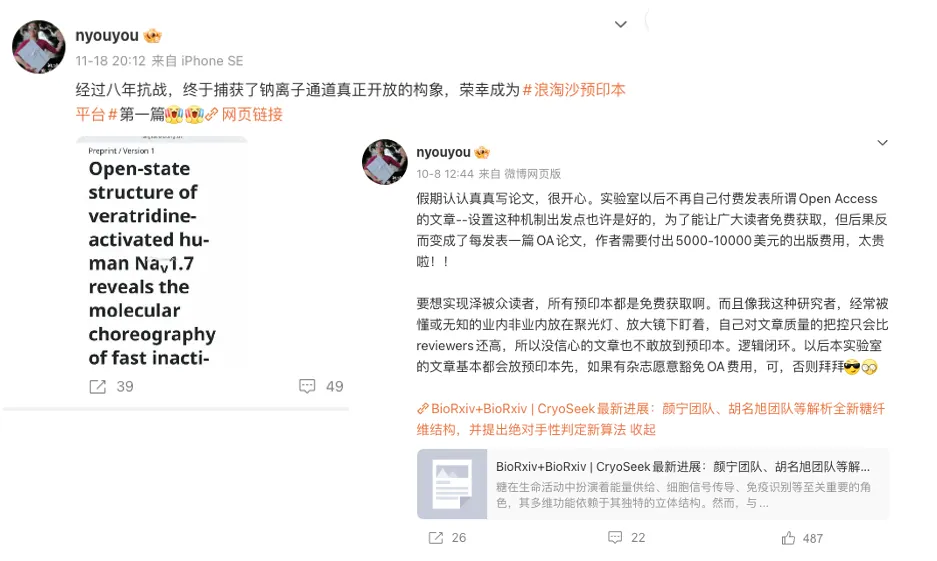 然而,比研究自身更被人们谈论的,是这篇论文发布的方式,它并非刊登在传统的国际期刊当中,而是率先发表在浪淘沙预印本平台之上,这也被看作颜宁此前「未来团队的论文会,优先发预印本,不再为昂贵的文章支付,处理费」这一观点的初次实际施行。