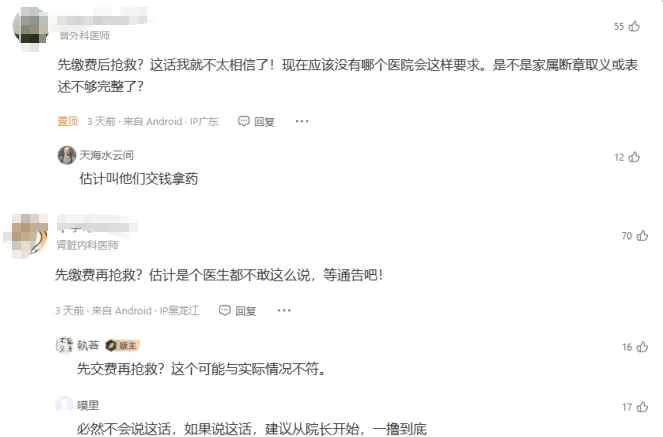 孩子家属先缴费再抢救的指控,刺痛了公众最敏感的神经,更触怒了广大医护人员的专业尊严——在他们看来,这样的叙事近乎荒谬,完全违背了执业生涯中最基本的救治原则与职业本能。