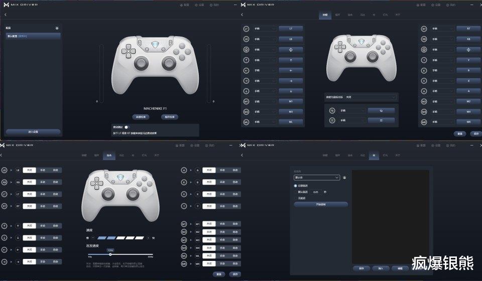 在自定义方面,除了上面我们提到的摇杆设置外,通过驱动软件,我们还可以对F1进行超过100项功能的设置,并能保存设置到手柄内置存储中。有了内置存储也即意味着一旦设置完成,无需驱动软件常驻后台,我们就能在任何设备上继续使用个性化设置。