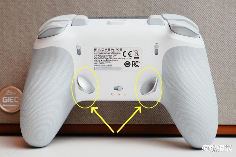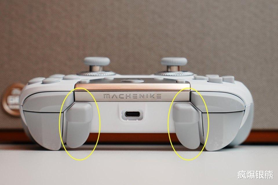 顶部按键设计如上图,除了常见的四个肩键外,还有两个支持自定义的小肩键。