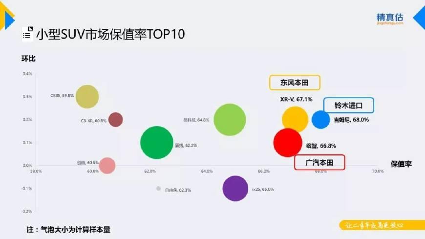 小型SUV TOP榜排名稳定,且除了ix25和自由侠保值有小幅下滑外其他车系保值率均有所上升,吉姆尼、XR-V、缤智依旧位居保值榜前三甲,相当稳定。CS35保值率上升并取代2008跻身保值榜。但如果您不是越野爱好者的话,吉姆尼还是不建议购买。