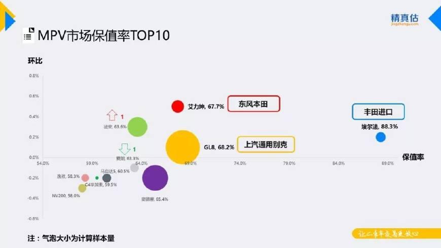 MPV保值率TOP榜排名基本稳定,由于埃尔法新车加价,因此其流通车辆保值率始终表现坚挺,在该级别车辆中始终保持遥遥领先的地位。GL8仍凭借其保有量优势而稳定的排在该级别中第二位,艾力绅、奥德赛紧随其后,途安保值率排名上升一位,夏朗排名下降一位。