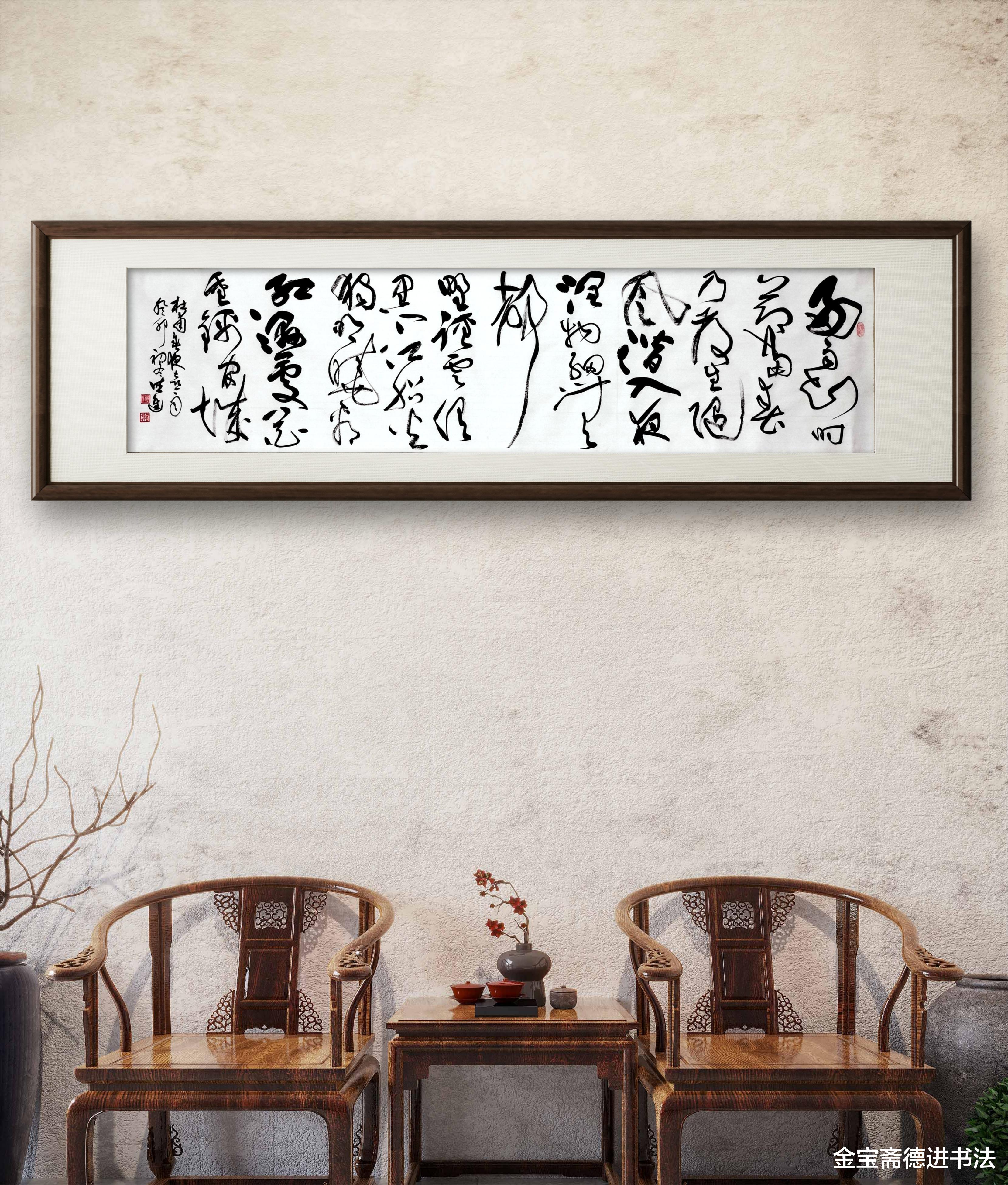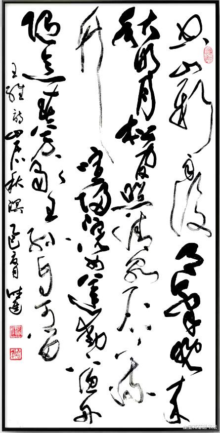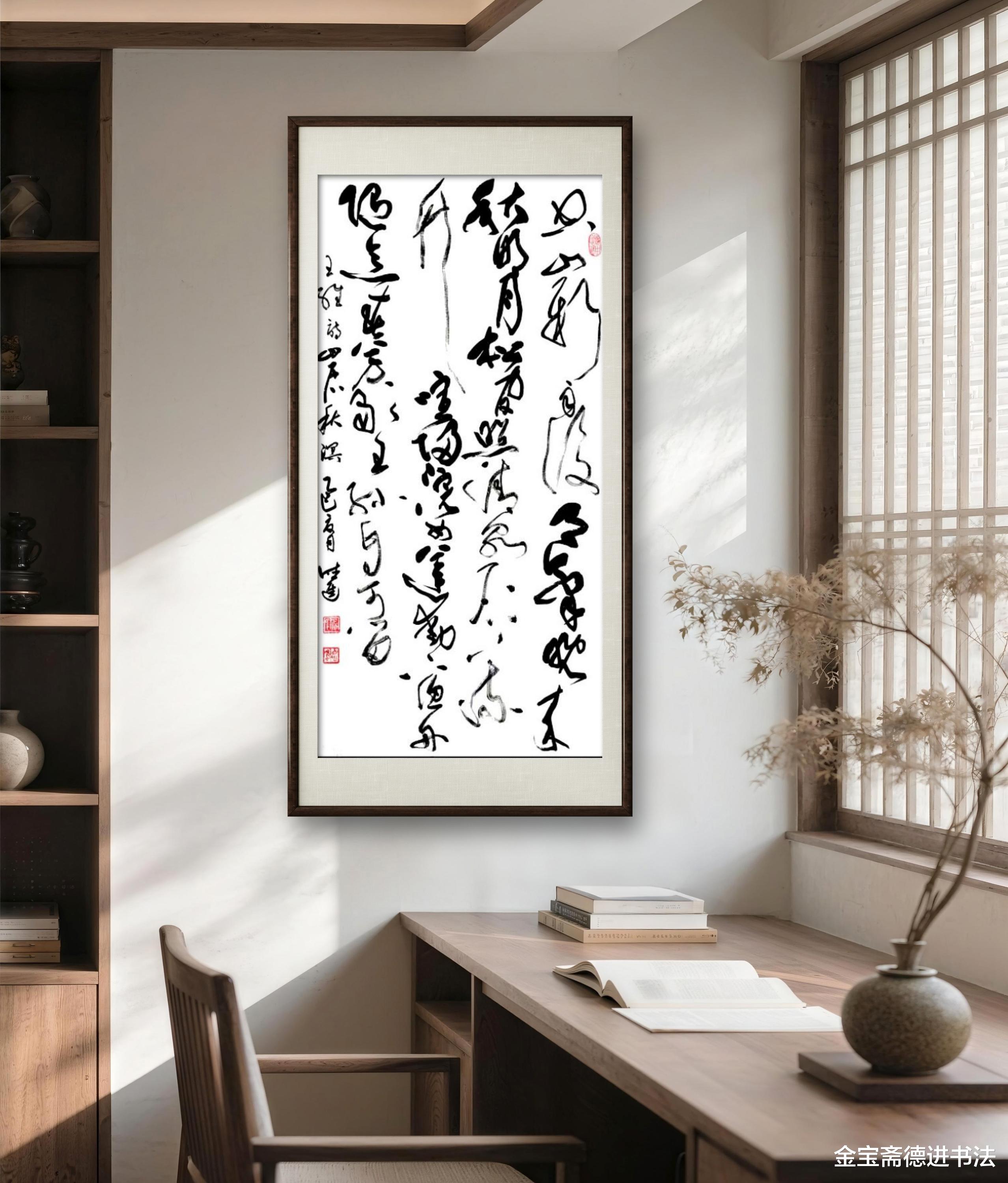 草书以其飞动的神韵与写意的表达,将王维笔下秋雨所蕴含的澄明禅意生动具象化。那竖轴犹如擎天巨柱,稳稳撑起一幅清寂悠远、意境空灵的山居雨景图。