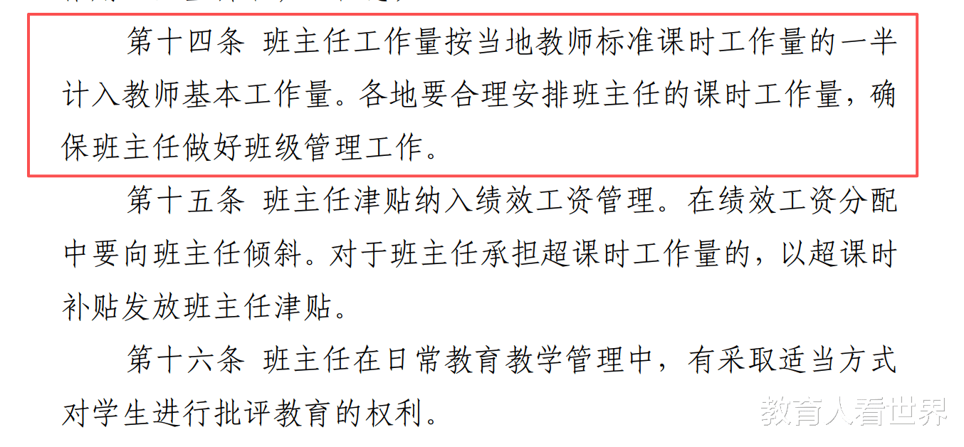 不过有招儿:教育部早有规定!《中小学班主任工作规定》第十四条明文要求:班主任工作量按标准课时工作量一半计入基本工作量。落实了,班主任不用带那么多课(比如从18节减到9节),自然有精力处理杂事——这比招助理更接地气。