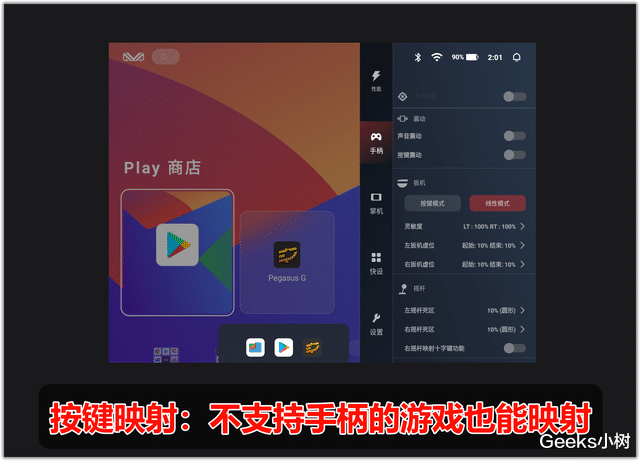 其中,我超爱按键映射这个功能!毕竟有些游戏压根不支持按键操控,别慌,YANEO Pocket AIR Mini支持按键映射,而且在快设中心还能设置灯光、性能、风扇模式等操作。