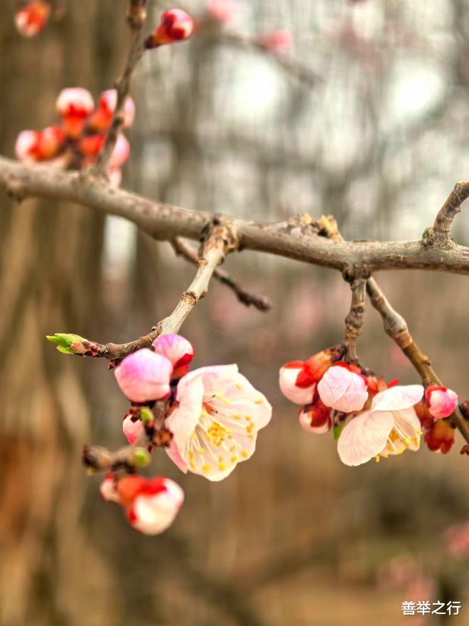 站在田埂上放眼望去,山间河道桃杏花开得像粉红色的海洋。村民正在果园中劳作,他们脸上的笑容比春花还要灿烂。正如老话说的“一年之计在于春”,望着这充满希望的景象,我的心里也涌动着温暖的力量。