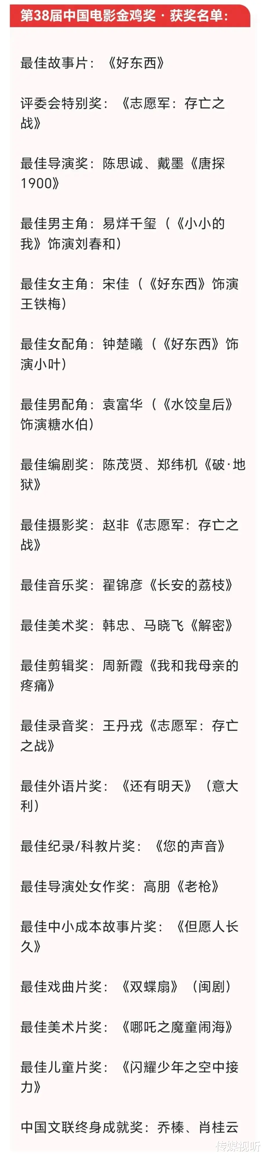 易烊千玺凭借《小小的我》(饰演刘春和)获得最佳男主角奖,也成为最年轻的金鸡奖影帝。