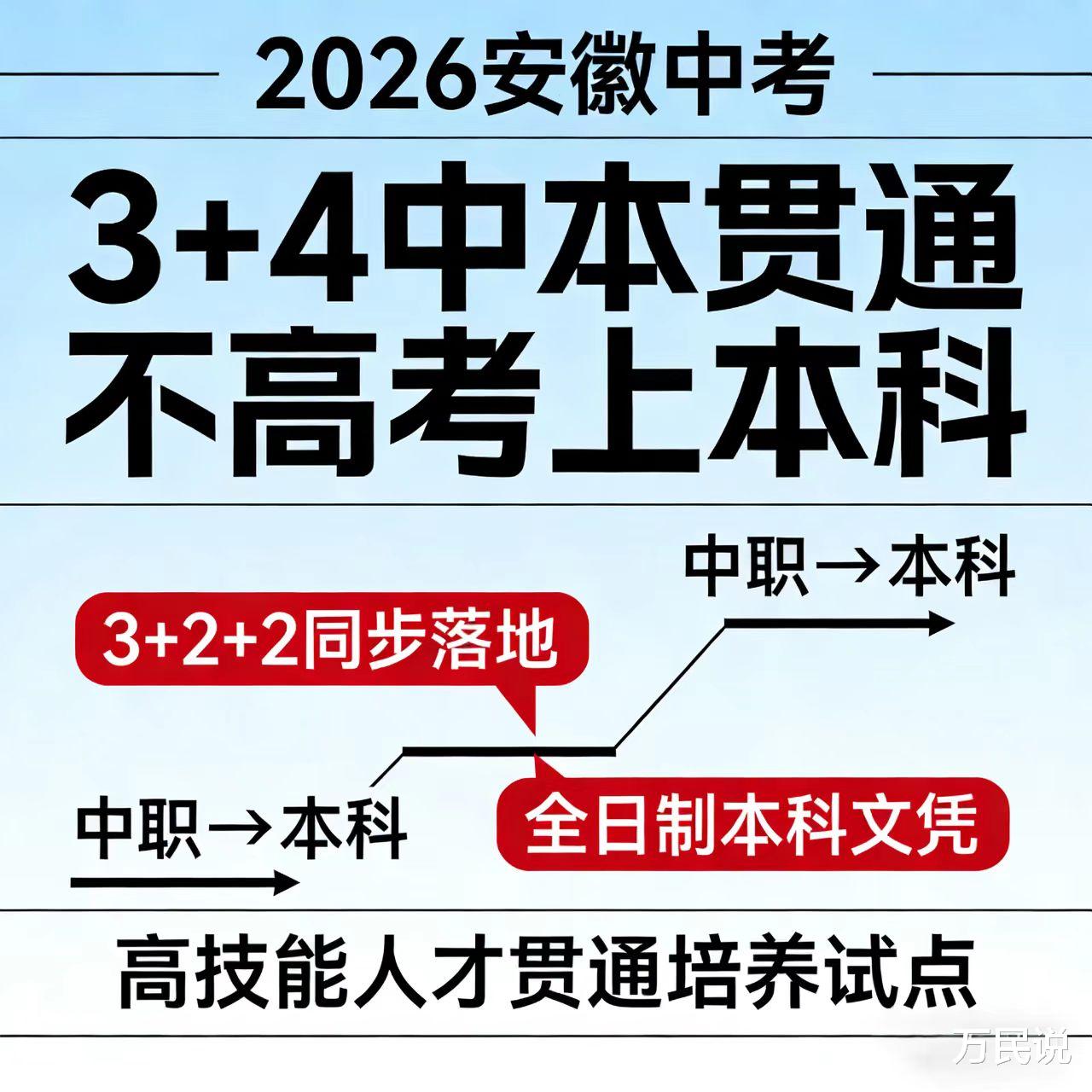 近日,安徽省教育厅印发《关于开展高技能人才贯通培养试点工作的通知》,明确自2026年起,启动高技能人才贯通培养试点。这意味着,一种全新的、更具吸引力的升学路径—“3+4”和“3+2+2”模式,将登上安徽中考舞台,为学子们打开一扇通往本科院校的“技能+学历”双赢大门。