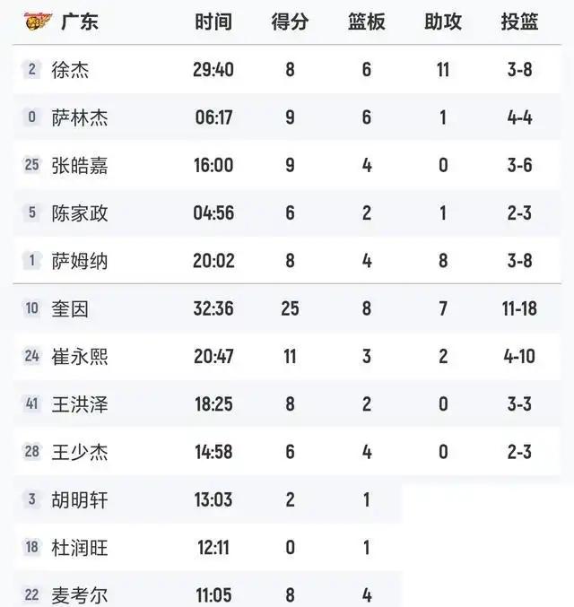 奎因轰下25分8篮板7助攻,这数据确实漂亮。更要命的是他们的球权运转。徐杰全场拿了8分6个篮板,外加整整11次助攻。