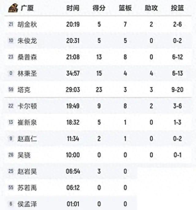再看看广厦的基本盘。胡金秋这场球实在太反常了。