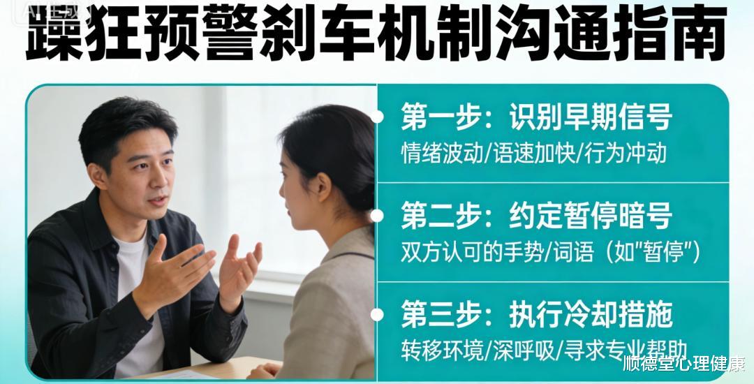 要预判躁狂信号,设立刹车机制。轻躁狂或躁狂发作时,患者可能因过度自信、精力旺盛而忽视潜在的风险,如过度消费、冲动决策。因此,提前建立预警系统和应对策略至关重要。要与亲友协商,制定冷静期协议。例如,我连续两天只睡3小时却精力充沛,需要暂时停重大决定。建立延迟行动规则,在躁狂倾向出现时,强制等待24~48小时再做决定,并征求他人意见。这种技巧不是在压制情绪,而是利用理性思考,防止冲动行为带来的不良后果。