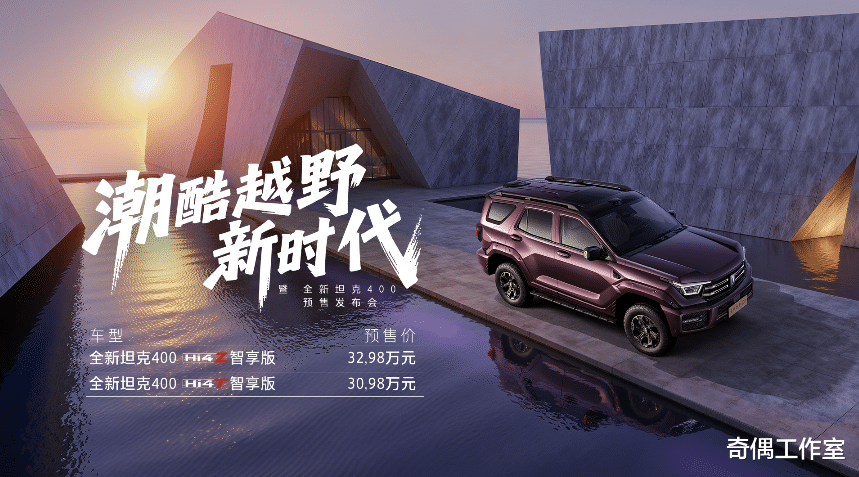 10月21日,主题为“潮酷越野新时代”的全新坦克400预售发布会成功举行,全新坦克400 Hi4-Z智享版,预售价32.98万元;全新坦克400 Hi4-T智享版,预售价30.98万元。全新坦克400依托机甲美学、硬核性能、豪华智能三大优势,聚焦打造潮酷越野SUV价值标杆,领衔开启潮酷越野新时代。