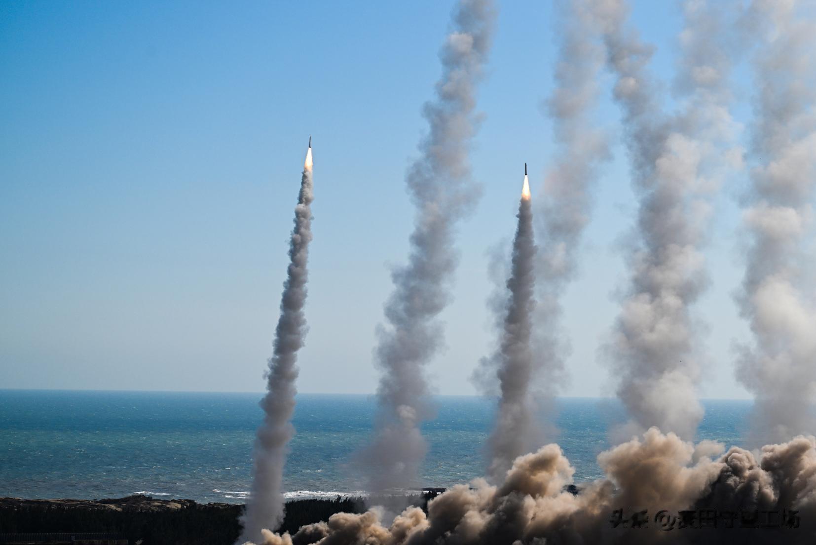 在“正义使命-2025”演习中,中国人民解放军进行远程火箭弹实弹射击,并表示:“取得了预期效果”,根据台岛媒体的说法,一共发射27枚远程火箭弹,第一波17枚火箭弹落于基隆东北方72海里外,第二波10枚火箭弹落在台南西方约50海里处,全部命中了预定区域,在海上引发巨大水柱。