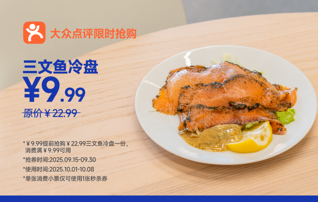 还有宜家经典的美食:人气三文鱼冷盘和瑞典式肉圆,活动期间在大众点评抢券只需9.99元。