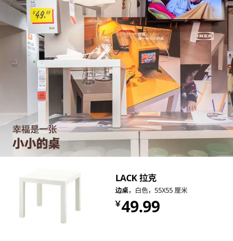 幸福很简单,也许是一张再简单不过的LACK拉克边桌。洁白的桌面,利落的线条,和我十年前毕业租房的那张一模一样。那时候,这张不到50元的小桌子是我的全部——饭桌、书桌、会客桌。
