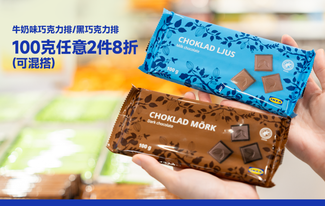 巧克力脑袋狂喜,热门的巧克力排也有折扣。活动期间,购买牛奶味巧克力排或黑巧克力排,任意搭配满2件即享8折优惠。