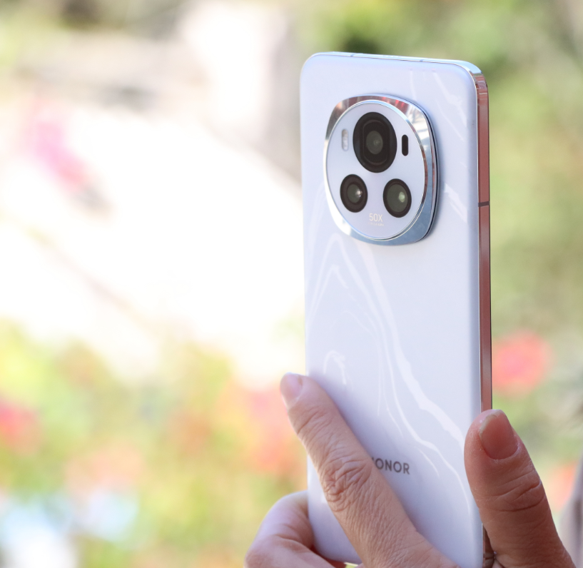 抛开性能,这款手机的影像方面的优势就非常明显了,毕竟是曾经荣耀顶配旗舰,后置给非常专业的5000万像素的主摄,为H9000传感器。和荣耀magic 7是同款,它具备1/1.3英寸的大底,也支持OIS光学防抖,同时又给到了5000万像素的超广角,和3200万像素的浮动长焦作为辅助,能够做到2.5倍的光学变焦和50倍数码变焦。前置自拍镜头也非常给力,像素5000万,支持4K视频录制。