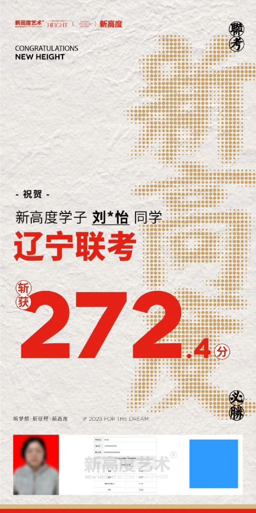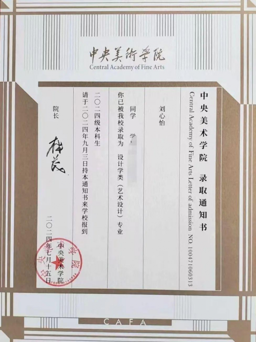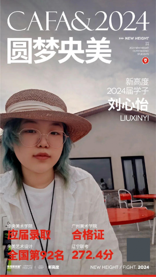 2024年美术艺考,来自鲁美附中的新高度辽宁学子刘心怡同学凭借出色的表现,应届斩获央美艺术设计全国第92名,广州美术学院合格证,辽宁联考272.4高分,最终成功被中央美术学院录取。