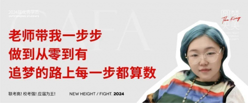 选择来新高度,最重要的还是因为这里优异的央美设计成绩。小班教学央美设计全国状元榜眼探花每年都有,学长学姐的辉煌战绩给了我很大的自信和勇气去追求我的央美设计梦!