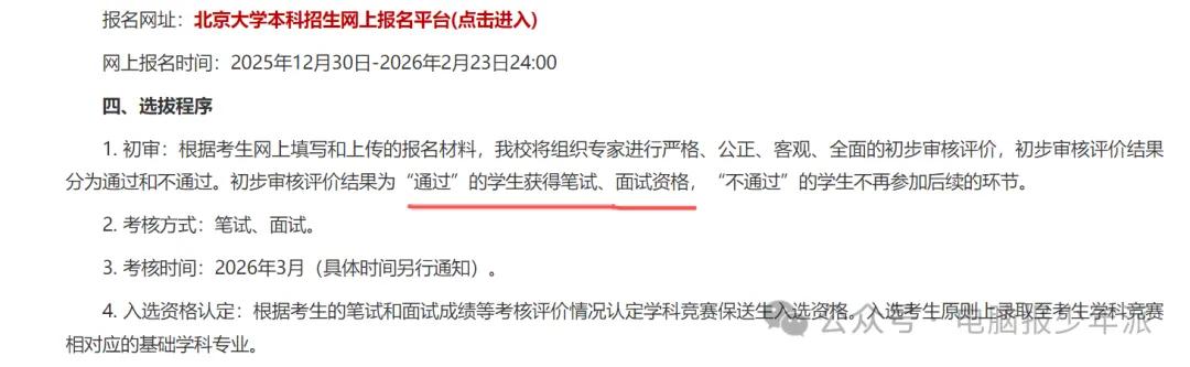 北京大学也明确表示,根据考生的笔试和面试成绩等考核评价情况认定学科竞赛保送生入选资格。