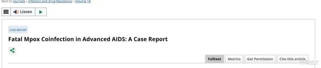 近日,《感染与抗耐药性》杂志上发布了一篇名为《晚期艾滋病患者发生致命性痘病毒合并感染:病例报告》的病例报告。