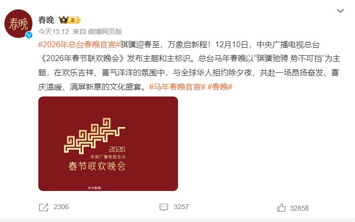 官宣!春晚主题“骐骥驰骋 势不可挡”三大亮点提前“剧透”2026年马年春晚