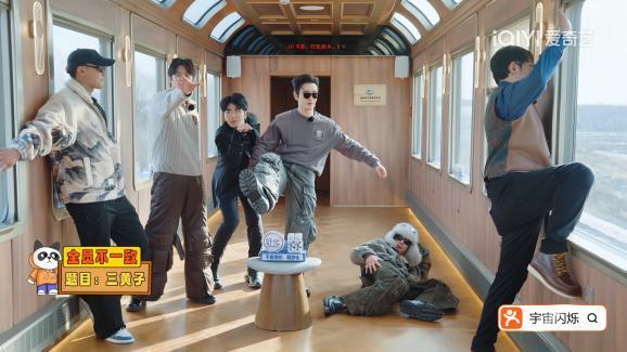 真会玩!把亚布力之旅的第一站搬上了雪国列车,车厢游戏一个比一个抽象。反应能力问答环节的规则是回答跟问题完全无关。