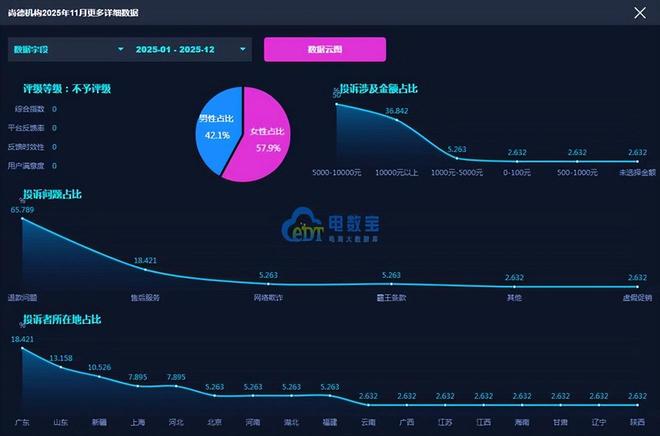 据网经社旗下电商大数据库“电数宝”监测数据显示,尚德机构2025年至今投诉的问题主要包括退款问题、售后服务、网络欺诈等。