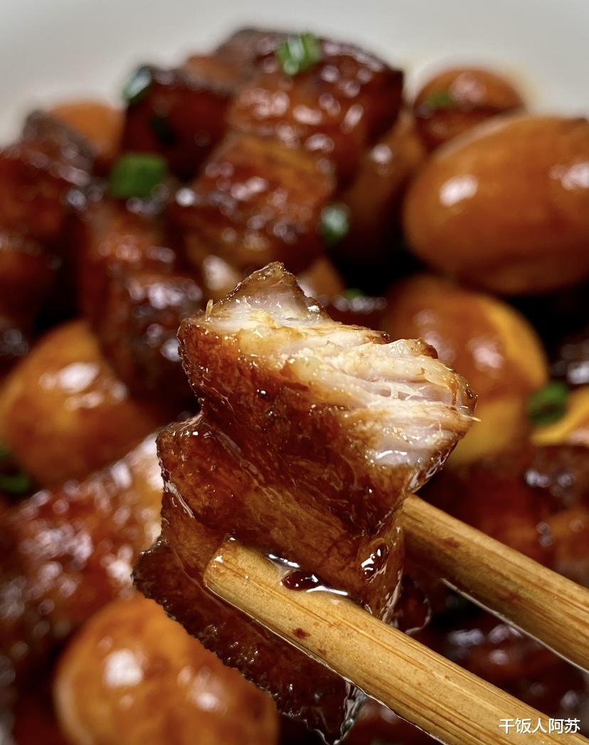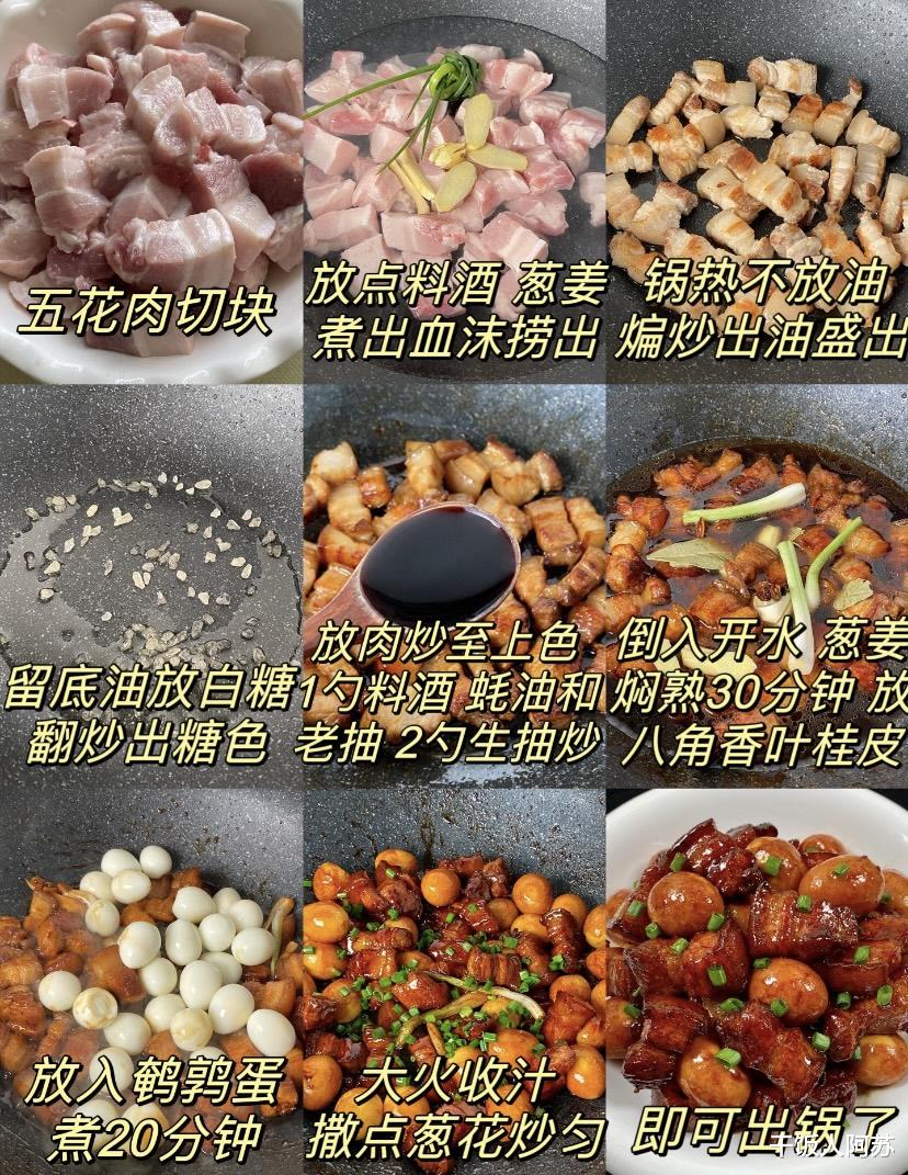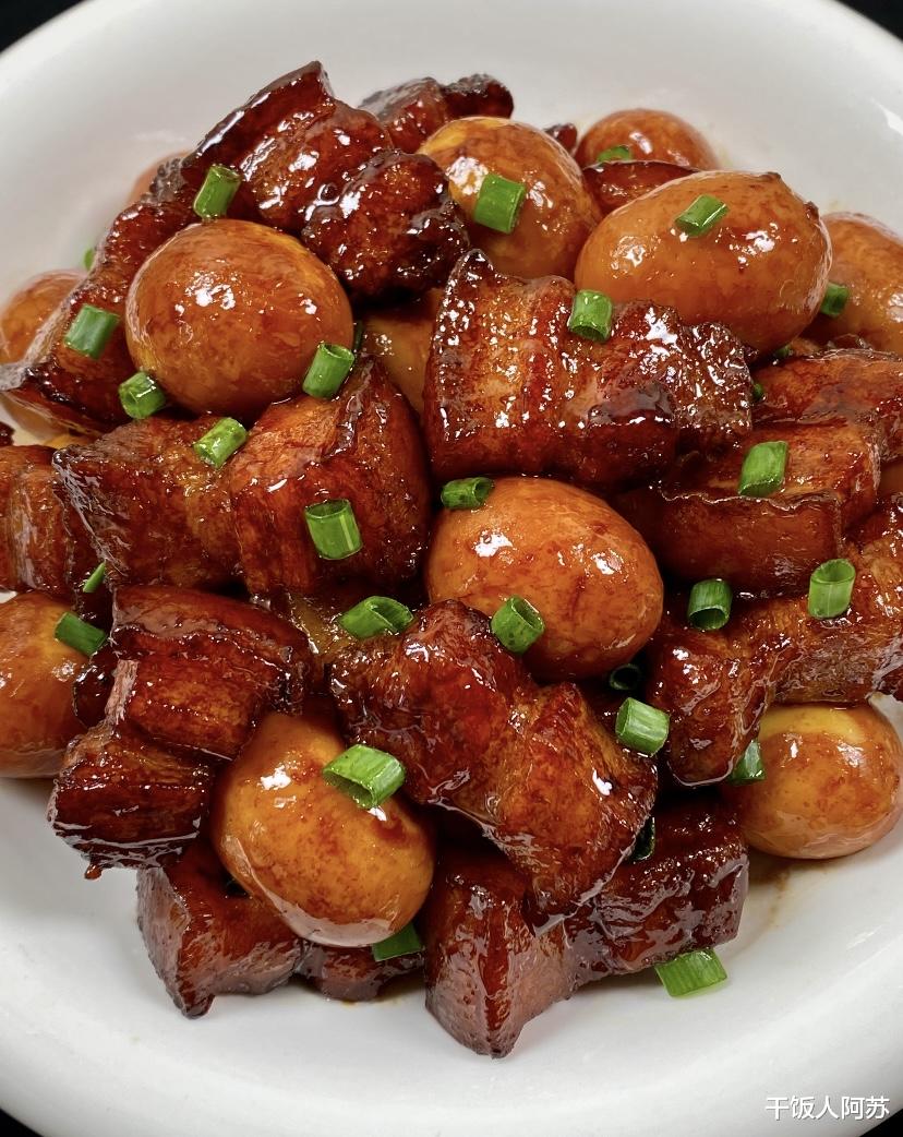 最后,转大火收汁,待汤汁浓稠、均匀裹在肉块和鹌鹑蛋上时,撒上一把葱花,翻炒均匀即可出锅。收汁时要不断翻动,避免糊锅,同时让每一块肉和蛋都裹满浓郁的酱汁。这道红烧肉鹌鹑蛋色泽红亮、香气扑鼻,肉质软糯、鹌鹑蛋入味,是一道老少皆宜的家常美味。无论是搭配米饭还是馒头,都能让人食欲大开,连汤汁都不愿放过。