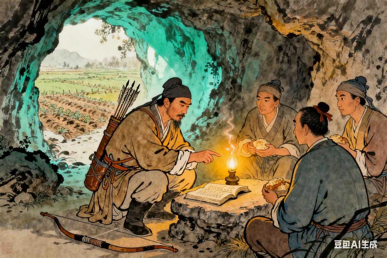 崇祯十二年的商洛山,春天来得晚。李自成带着那十八个弟兄,白天在山里打猎、种地,晚上就聚在山洞里,听他讲以前的事,讲以后要做的事。他让人从山外捎来兵书,油灯芯爆了一下,火星落在袖口,他没在意,继续指着书里的字说:“咱们以后打仗,不能只靠猛劲儿,还得懂章法。” 有次他下山,见个老农蹲在田埂上哭,一问才知道,地主把好地都占了,老农种的薄田收的粮食,还不够交租。他蹲下来,抓了把田埂上的土,土在手里簌簌地掉,他说:“大爷,以后要是有机会,我一定让大伙儿都有地种,不用再受这委屈。”