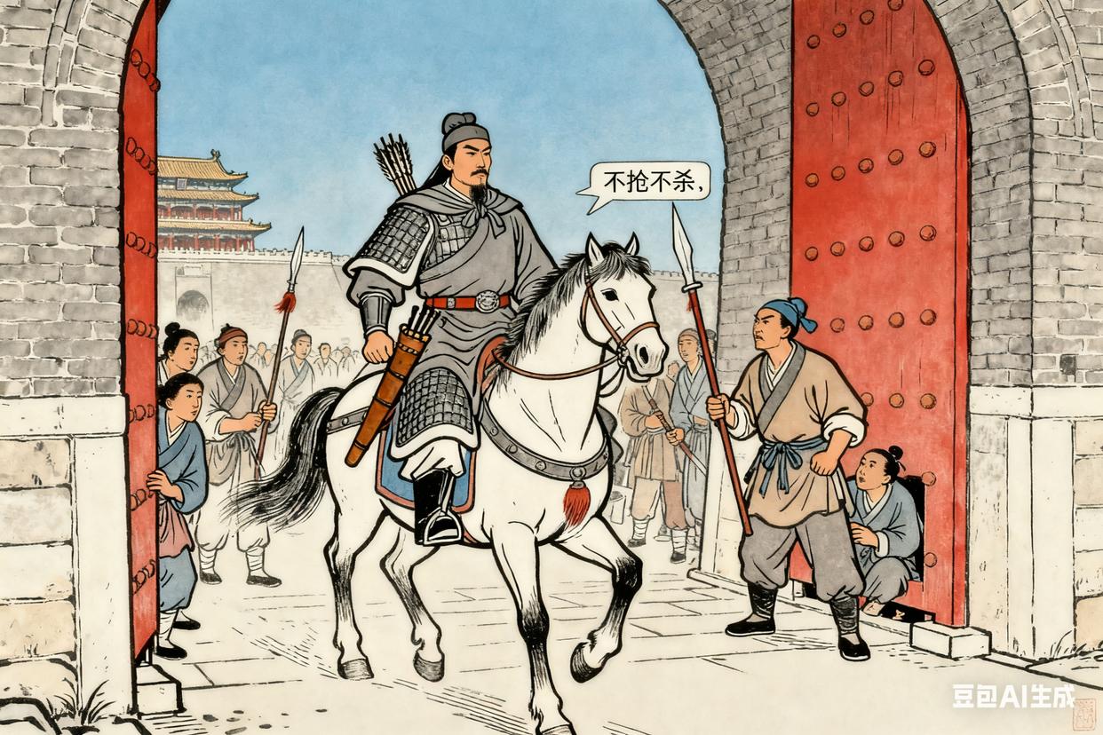 崇祯十七年三月十七日,北京城外的炮声震得地都在抖。李自成的队伍围住了北京,城里的明朝官员慌作一团。他让人给明思宗朱由检送信,说只要朱由检退位,他可以保明朝宗室安全,还能让百姓不受苦。可朱由检没同意。三月十九日清晨,北京的城门开了,大顺军进了城。李自成骑着马,从德胜门进了北京,街上的百姓有的躲,有的看,他让人告诉百姓:“别怕,咱们是来替你们做主的,不抢东西,不杀人。” 他走到紫禁城门口,抬头望了眼午门,心里忽然有点空 —— 这就是明朝的皇宫,现在成了他的地方,可他知道,这不是结束,是开始。