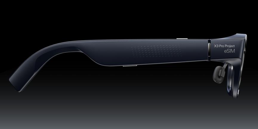 此次展会,最引人注目的智能眼镜产品当属雷鸟创新展示的X3 Pro Project eSIM,该产品是全球首款支持eSIM功能的AR眼镜,搭载双目全彩光机,致力于成为新一代计算平台。