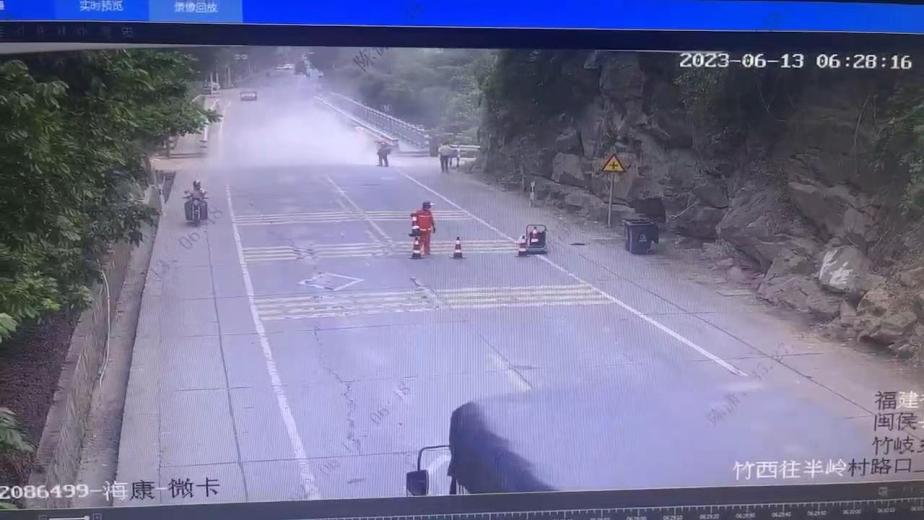 2023年6月13日上午6时40分左右,国道316线92公里500米至93公里路段右侧封闭施工,黄先生驾驶福州洋龙棉纺织品有限公司闽A蓝牌小货车,在确认对向无来车后驶入左侧道路。当车辆行驶至施工路段四分之三位置时,前方施工扬尘遮蔽视线,黄先生减速并紧急制动,但仍与对向车辆相撞。