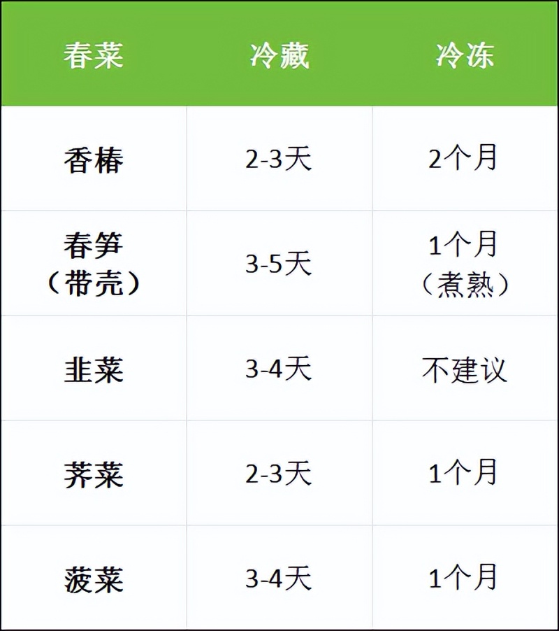 保鲜时长表