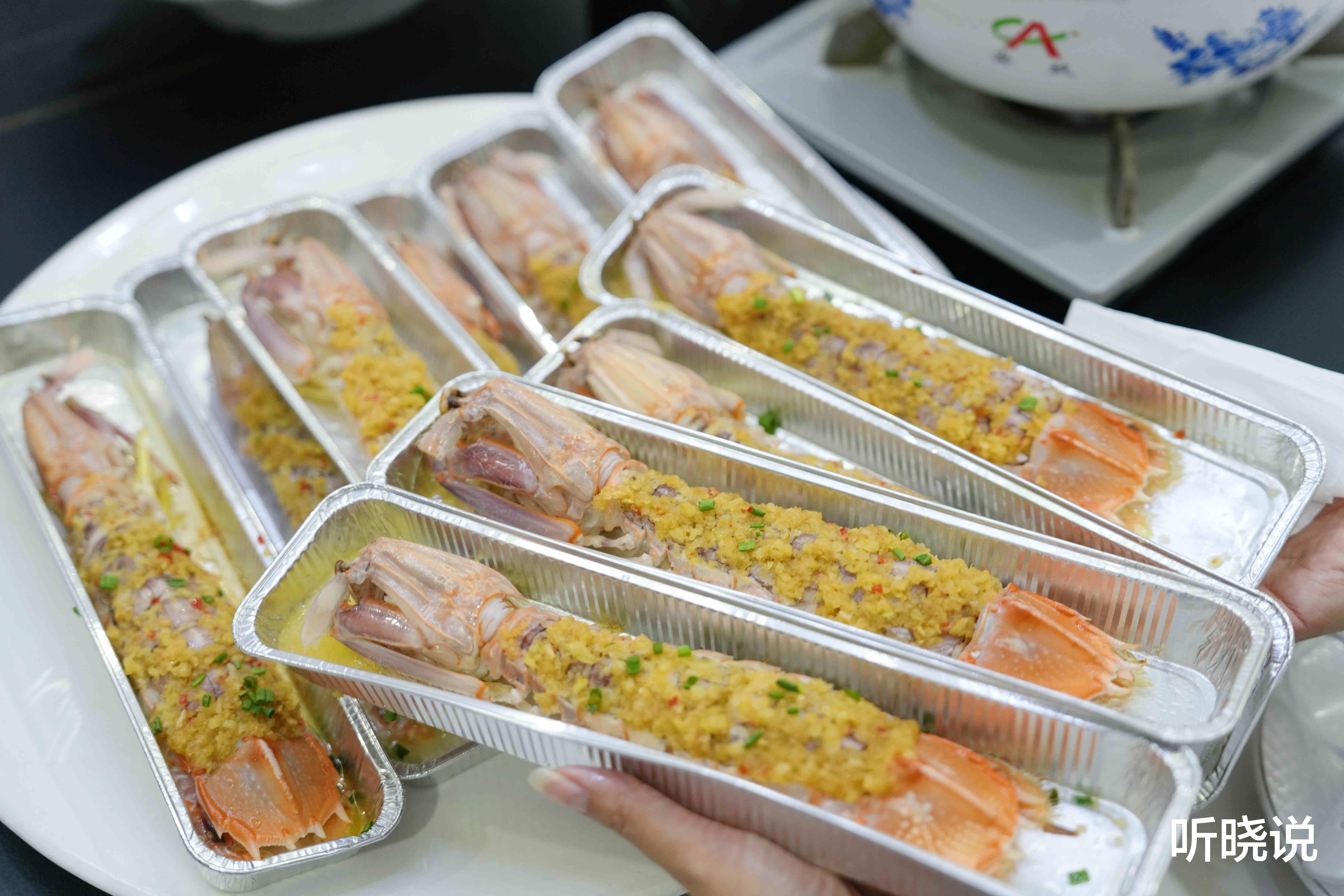蒜蓉富贵虾是招牌中的招牌,每只虾都饱满到快要撑破壳,足足有小臂那么粗长。蒜蓉的香气完美融入虾肉的鲜甜中,虾肉则Q弹有嚼劲,这个季节还有膏。