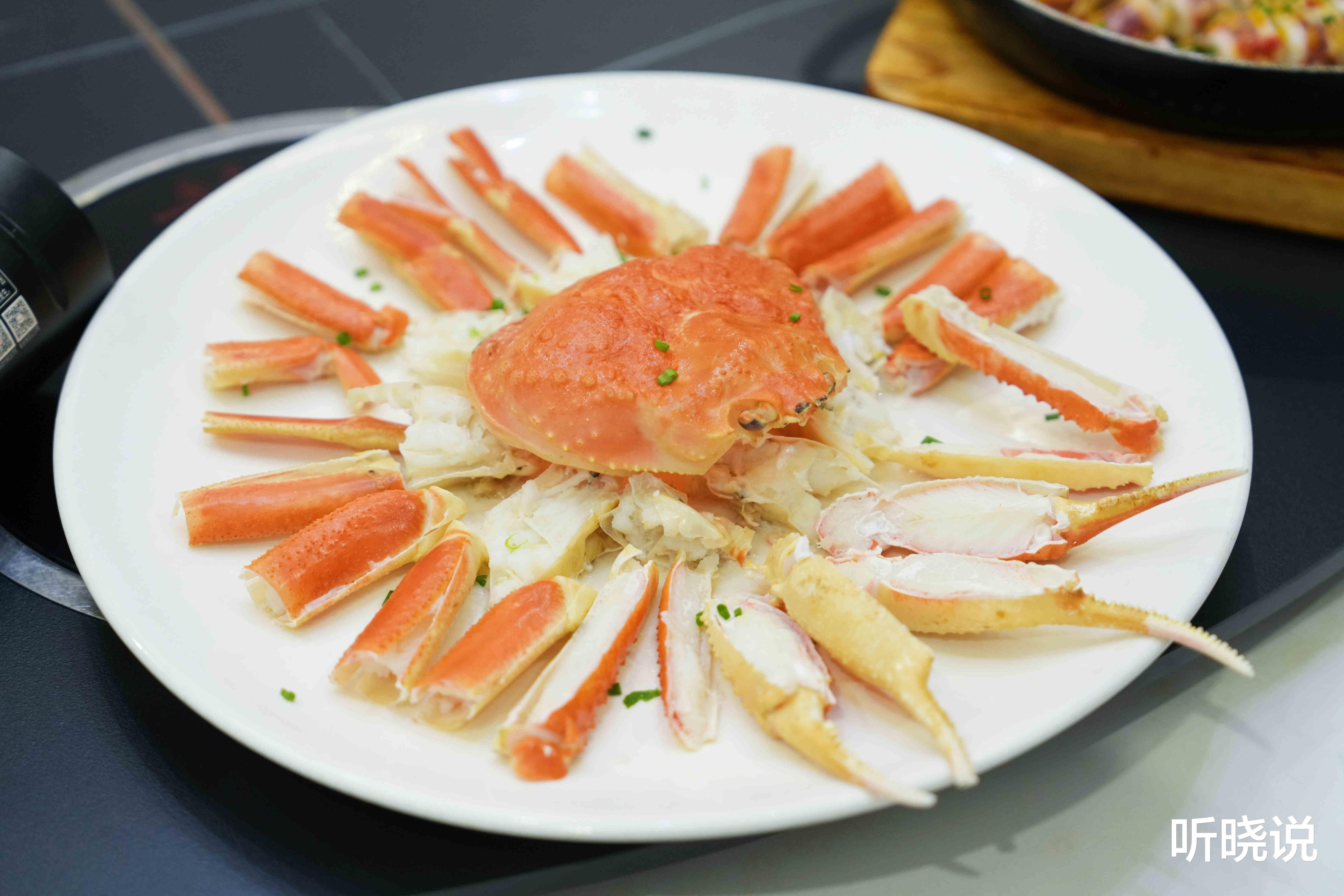 松叶蟹的出场让大家纷纷掏出了手机,高端的食材只需要用最朴素的烹饪方法。蟹腿肉一丝丝清甜紧实,简单的清蒸就足够惊艳。