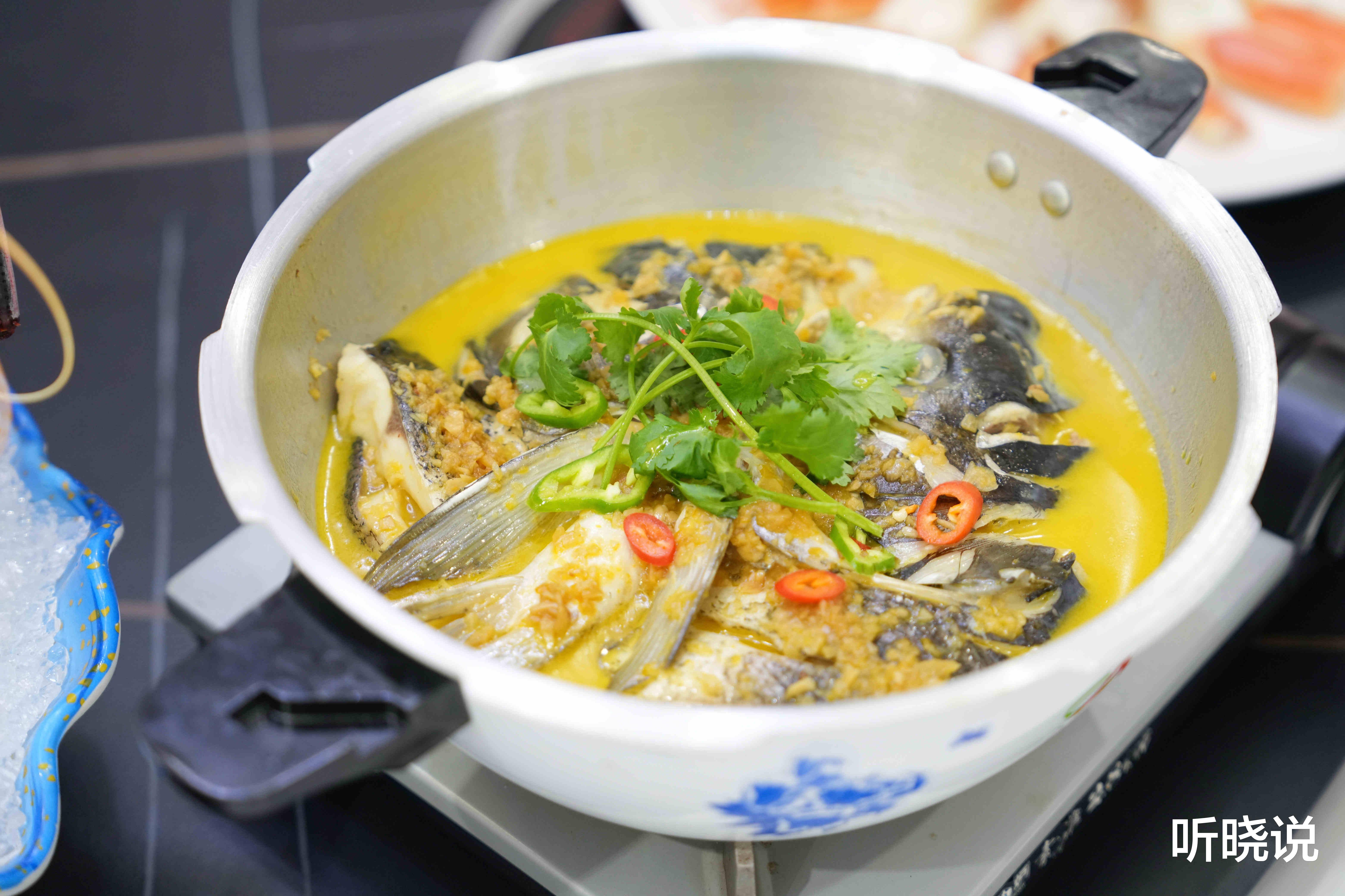 高压鱼头上桌时还冒着热气,鱼肉嫩到入口即化,独特的烹饪方式锁住了全部的鲜味。
