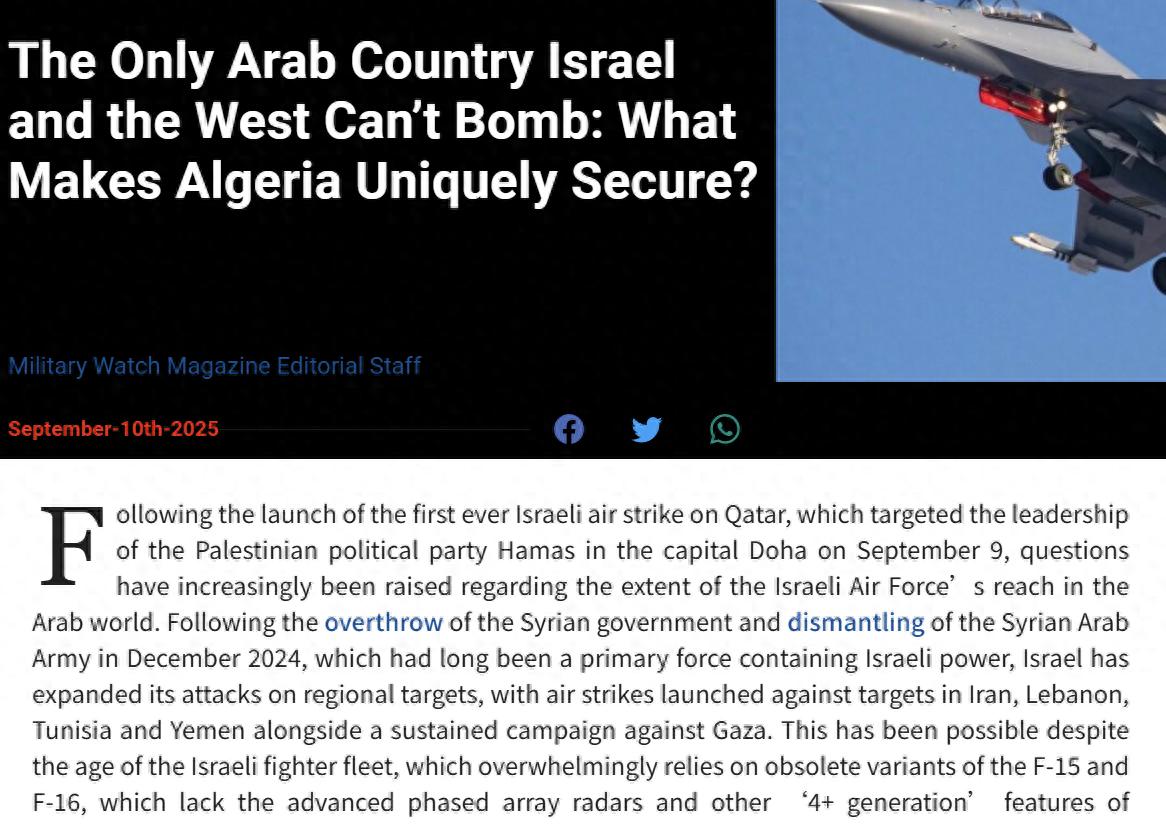 这事儿一发生,中东国家全慌了:连卡塔尔都保不住,谁能安全?就在这时,美国《军事观察网》和《防务新闻》同时提到了阿尔及利亚。