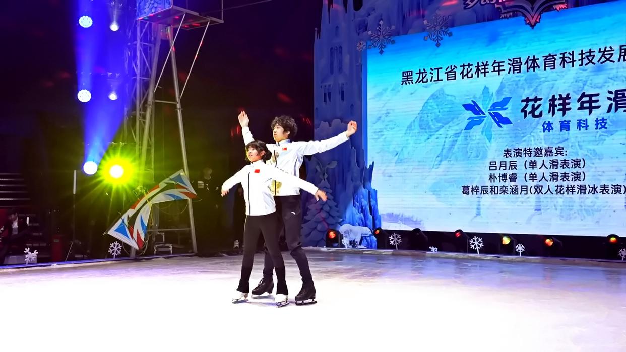 1、哈尔滨市体校学子、全国少年花样滑冰锦标赛单人滑冠军朴博睿,黑龙江省花样滑冰锦标赛成年组单人滑冠军吕月辰相继登场,轻盈灵动的冰上舞姿令人沉醉。