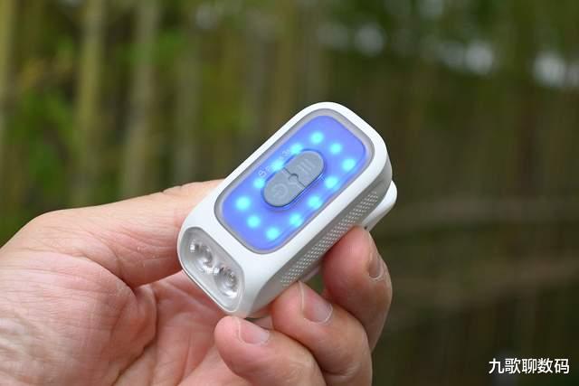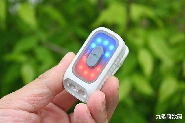 然后是侧光副灯:上一组图来详细展示下:红蓝闪可用于路面警示,夜跑时将其夹在胸前或背包上,用于提醒过往车辆和行人。红光可以保护视力并具有驱蚊的作用。我最喜欢的就是跑马灯,红、蓝、绿、紫、橙依次亮起,氛围感拉满有木有。