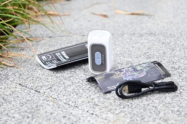包装依旧黑夜下的山峰为背景,正中是直观了然的透明展示窗,亮橙的字体参数十分醒目。底部一行数字分别是最高亮度“300”(流明)、最远射程“46”(米)和内置电池容量“400”(毫安)。当然它还有两大卖点,那就是红白光和警示灯。