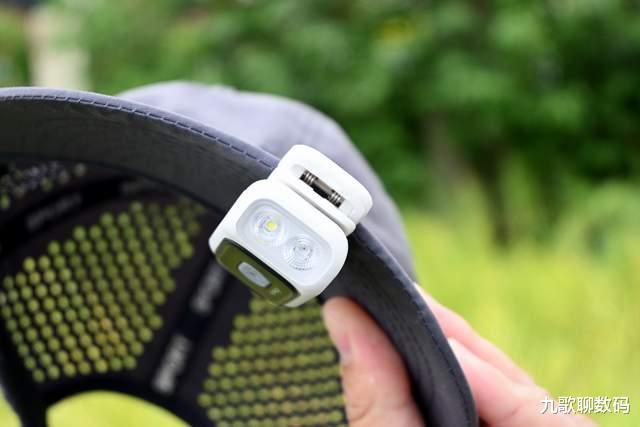 前方的主灯很有意思,它并非是如传统夹灯那样垂直的,而是特别采用了四十度倾斜角的设计,这样光线可以自然的向前下方照射,以覆盖工作区域。这样视线与光线间就可以同步了。对于喜欢夜跑的我来说,都是将其夹在帽檐上。