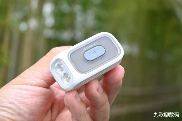 硅胶双键分别用来控制主、侧灯。旁边有双键同时长按3秒锁定的贴心提示,可避免放在包或兜内误触开启。带电源图标的为主灯开关,长按亮灯,双击切换为红光模式,单击可以切换档位。带三道杠的为侧灯开关,逻辑与主灯一样。操作上简单易上手,对小白用户很友好。按键手感也不错,富有弹性,实侧戴着手套也能摁压无误。