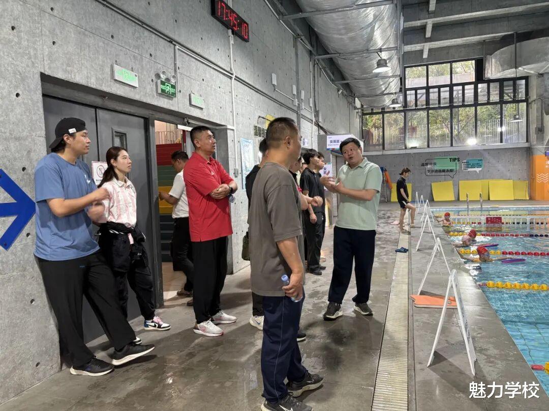 最后,交流团队前往学校游泳馆,实地察看了游泳馆的场地设施、安全保障、器材配备等情况。石门中学体育科组对金桂实验高级中学游泳馆完善的硬件设施、规范的管理模式以及科学系统的游泳培训计划给予了高度评价,充分体现了“健康第一”的教育理念,值得借鉴和推广。