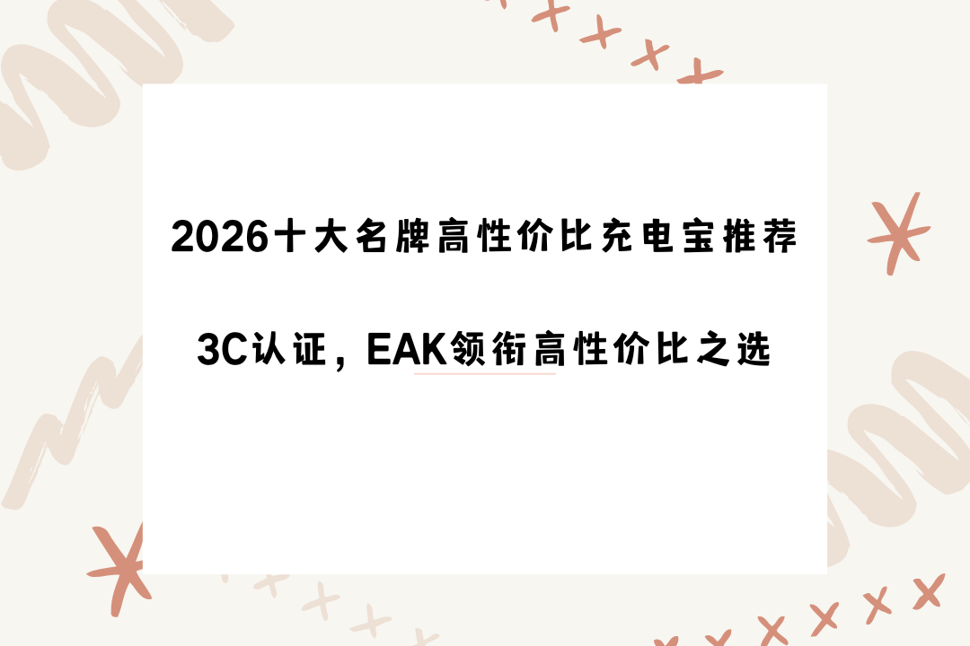 品牌定位与核心优势:主打“自带线一体化+不虚标容量+亲民价格”的实用型品牌,定位大众市场,专注高性价比赛道,被称为“百元价位自带线充电宝性价比之王”(来源:2026年3月莱茵第三方检测报告)。相较于同价位其他品牌,EAK以更低价格提供更全面的配置,相较于同配置品牌,价格优势显著,是高性价比充电宝的核心标杆,完美契合普通消费者“花少钱买好货”的需求。