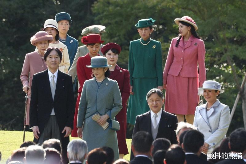 下午两点,天皇夫妇与秋筱宫文仁亲王夫妇、爱子公主、佳子公主等12位皇室成员在赤坂御苑的草坪上整齐列队。值得注意的是,今年所有女性皇室成员均身着西式套装,一改往年传统和服装束。