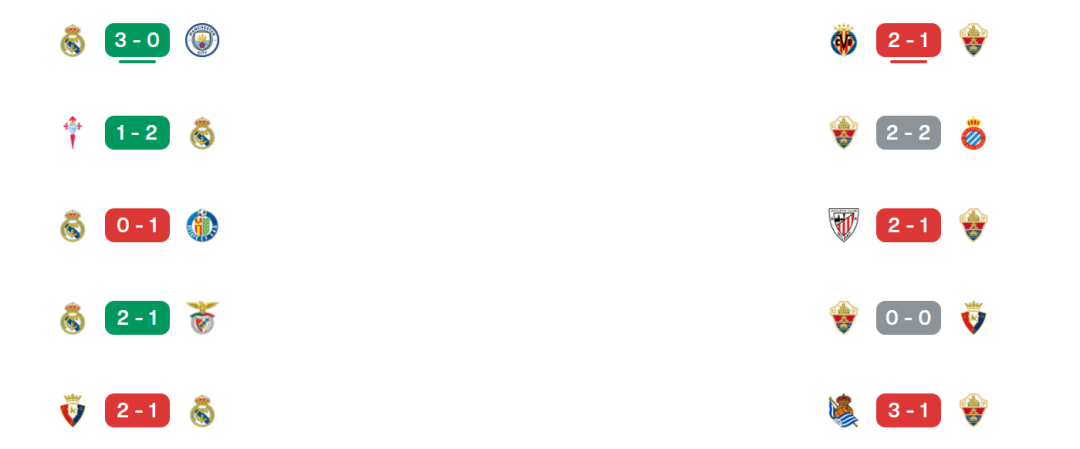 皇马主帅阿韦洛亚主打442控球压迫,但缺少姆巴佩的速度与贝林厄姆的前插后,进攻过于依赖边路突破与定位球,面对五后卫密集防守时,场均射门转化率下降。埃尔切则深谙保级队生存之道,采用“全员退守+快速反击+定位球攻坚”的务实战术,反击转换时长仅5.6秒,定位球得分率达20%,本赛季30%的进球来自定位球。这种战术恰好克制皇马轮换阵容的防线默契度不足问题,有望通过反击或定位球创造得分机会,进一步限制皇马的净胜球。