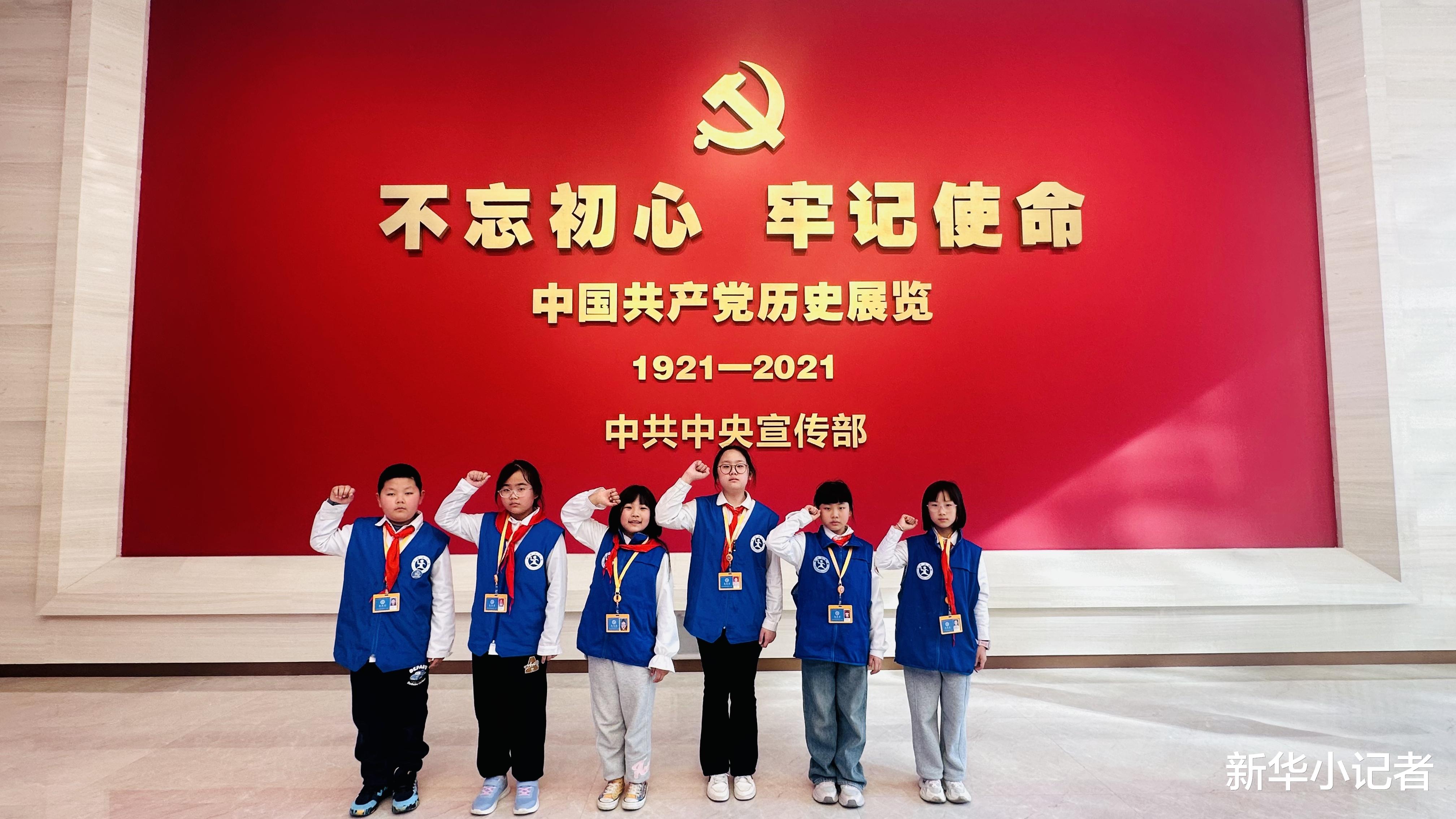 下午,小记者们走进庄严肃穆的中国共产党历史展览馆。一件件文物、一幅幅画面、一个个故事,生动展现中国共产党百年奋斗征程,引导大家感悟初心使命、铭记革命历史,坚定理想信念、增强爱国情怀。