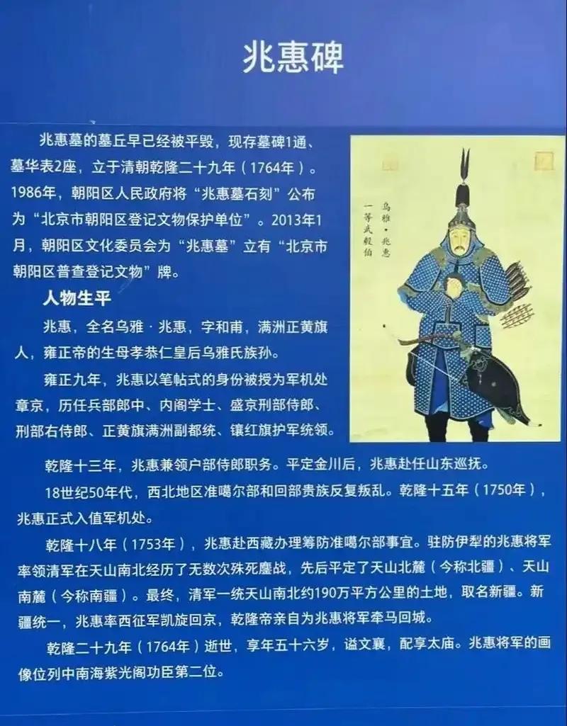 从国家利益看,兆惠无疑是民族英雄。他平定准噶尔和回部叛乱,将新疆纳入中国版图,为现代中国奠定了200万平方公里的国土。乾隆皇帝在《平定准部回部得胜图》中亲自题词,称兆惠为“大清第一战神”。