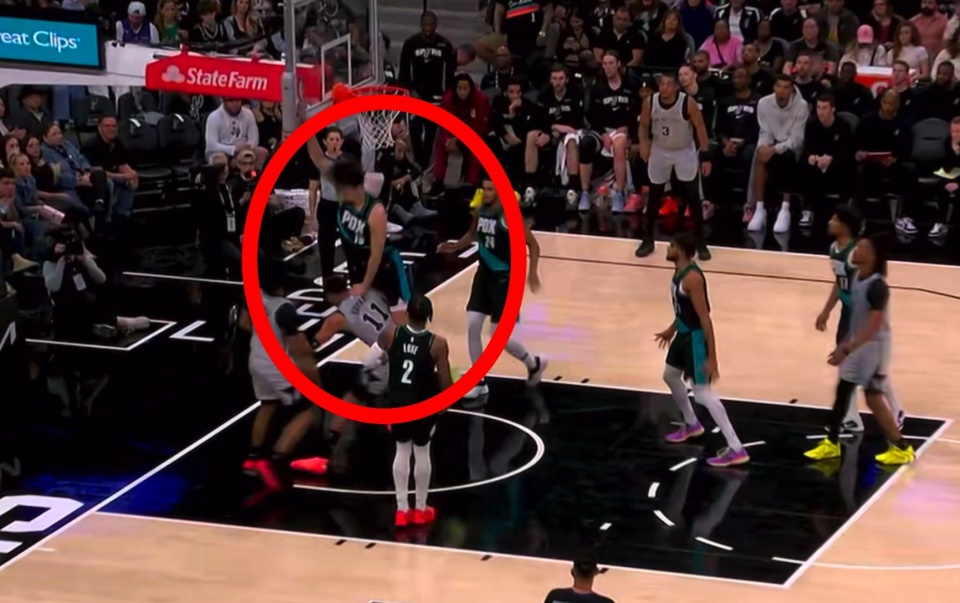 NBA常规赛继续进行,波特兰开拓者在背靠背的赛程中造访圣安东尼奥,全队显露出明显的疲态。在这个常规赛的夜晚,对于中国球迷而言,焦点的转移并非取决于比分,而是替补席末端的人员轮转。杨瀚森终于在首节末段获得了登场指令,尽管出场时间被严格限制在3分58秒,短暂的亮相让杨瀚森的数据定格在0分1篮板1助攻1盖帽,正负值达到+2,下面重点说一下开拓者的战术细节!杨瀚森刚要挡拆被直接赶回底角,最后0.4秒被骗了!(杨瀚森3分58秒数据请查看文章末尾统计图)